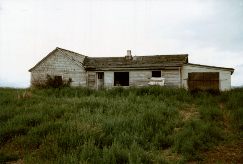 From family reminisces, we find some details which help in the identification of the property. The ranch was fairly remote. They called it the “Nipper Ranch.” There was a canal behind the house. There was a granary. There was a large field across the road. Fern also recalled that they lived near the Portneuf River. Finally, in the family archives of Frank and Fern, there are several photographs of the ranch when Fern was young as well as more recent photographs of a visit to the abandoned buildings on the property.