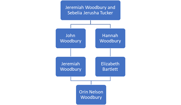 John Woodbury (1752-1821) was the son of Jeremiah Woodbury (1727-1820) and Sebelia Jerusha Tucker (1728-1801). John’s son, my fourth great grandfather, Jeremiah Woodbury (1791-1833), married his first cousin, Elizabeth Bartlett (1794-1851), who was the also a granddaughter of Jeremiah Woodbury (1727-1820) and Sebelia Jerusha Tucker (1728-1801) through her mother and John’s sibling, Hannah Woodbury (1767-1834). Therefore, the autosomal DNA that I share with other descendants of John Woodbury could come from John Woodbury and his wife Mary Ward, or it could come John’s sister, Hannah Woodbury, wife of Obadiah Bartlett.